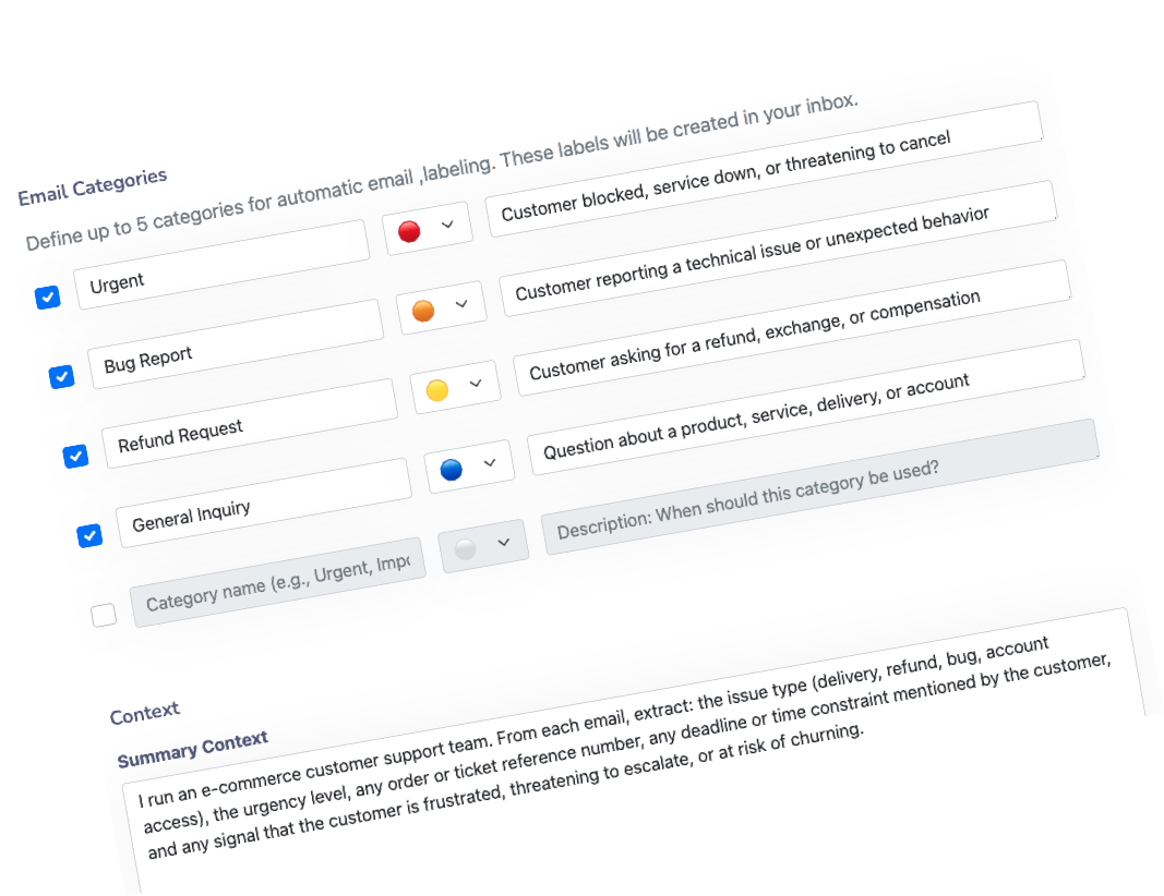Our Outlook addon automatically analyzes, labels, and summarizes every email based on your rules. Dates detected, invites created, responses suggested—all in the sidebar. Your business teams respond faster, better.